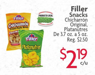Filler Snacks Chicharron Original, Platanutres De 3.7 oz. a 5 oz.