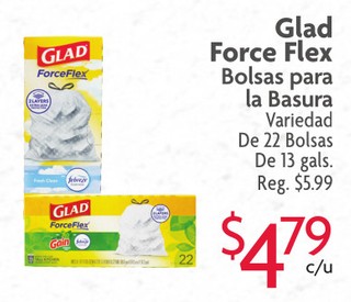 GLAD FORCE FLEX BOLSAS PARA LA BASURA VARIEDAD DE 22 BOLSAS DE 13 GALS