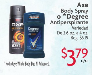 Axe Body Spray o *Degree Antiperspirante Variedad de 2.6 oz. a 4 oz.