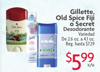 Gillette, Old Spice Fiji o Secret Desodorante Variedad de 2.6 oz. a 4.1 oz