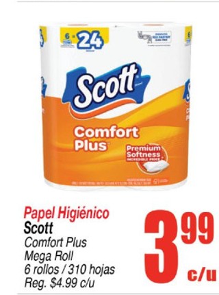 Papel Higiénico Scott Comfort Plus Mega Roll 6 rollos/310 hojas