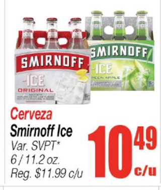 Cerveza smirnoff ice var. svpt* 6/11.2 oz.