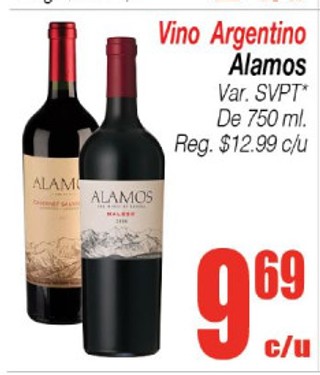 Vino argentino alamos vaar. svpt* de 750 ml.