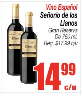 Vino español señorio de los llanos gran reserva de 750 ml.