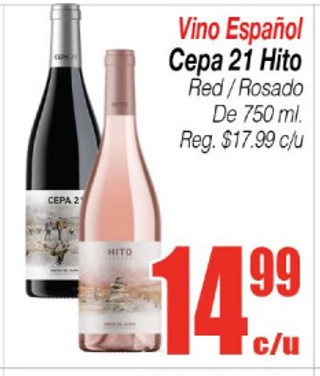 Vino español cepa 21 hito red / rosado de 750 ml.