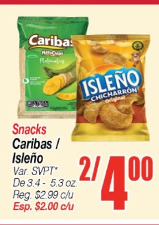 Snacks caribas / isleño var. svpt* de 3.4 - 5.3 oz.