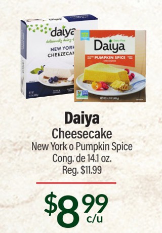 Daiya Cheesecake New York o Pumpkin Spice Cong. de 14.1 oz.