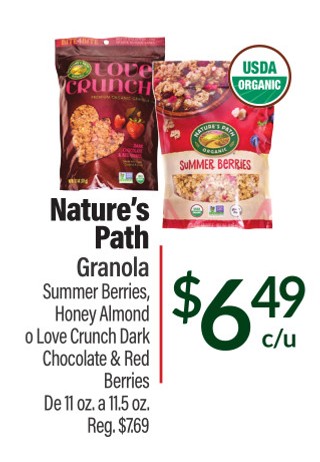 Nature's Path Granola Summer Berries, Honey Almond o Love Crunch Dark