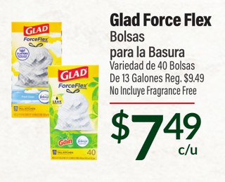 GLAD FORCE FLEX BOLSAS PARA LA BASURA VARIEDAD DE 40 BOLSAS DE 13 GALONES