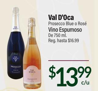 Val D'Oca Prosecco Blue o Rosé Vino Espumoso De 750ml