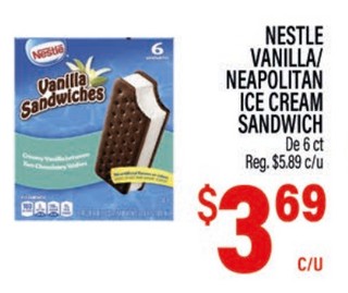 NESTLE VANILLA/NEAPOLITAN ICE CREAM SANDWICH De 6 ct