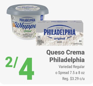 PHILADELPHIA Queso cream philadelpha Variedad regular o spread 7.5 o 8oz