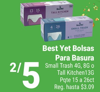 Best Yet Bolsas Para Basura Small Trash 4G, 8G o Tall Kitchen13G Pqte 15 a 26ct