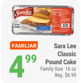 Sara Lee classic pound cake family size 16 oz.