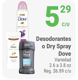 Desodorantes o Dry Spray Dove Variedad 2.6 a 3.8 oz
