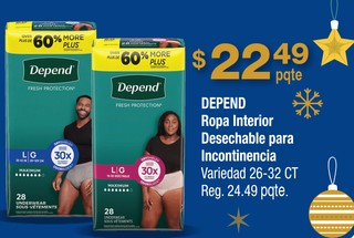 DEPEND Ropa Interior Desechable para Incontinencia Variedad 26-32 CT