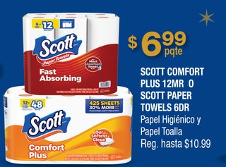 SCOTT COMFORT PLUS 12MR 0 SCOTT PAPER TOWELS 6DR Papel Higiénico y Papel Toalla