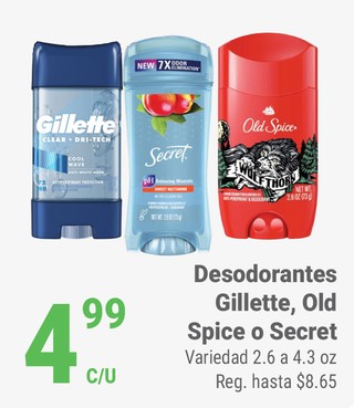 DESODORANTES GILLETE, OLD SPICE O SECRET VARIEDAD 2.6 A 4.3 OZ
