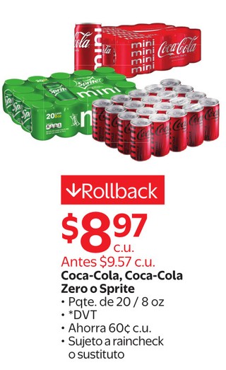 Coca-Cola, Cola-Cola Cola Zero o Sprite Pqte. de 20 / 8 oz.