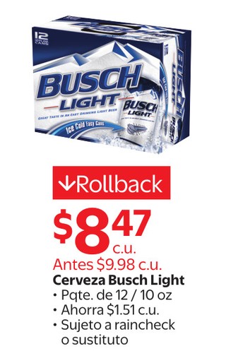 Cerveza Busch Light Pqte. de 12 / 10 oz.