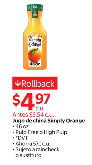 Jugo de China Simply Orange 46 oz. Pulp Free o High Pulp