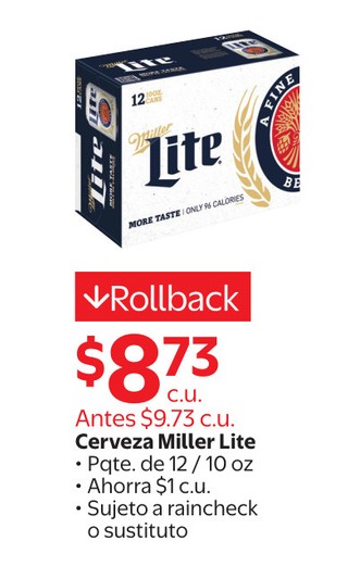 Cerveza Miller Lite Pqte. de 12 / 10 oz.