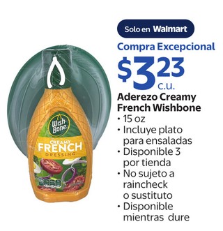 Aderezo Creamy French Wishbone 15 oz. Incluye plato para ensaladas.