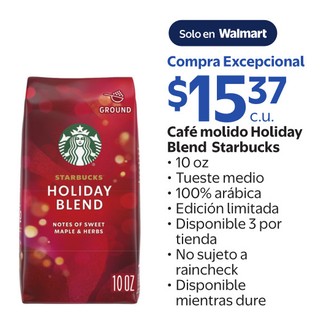 Café molido Holiday Blend Starbucks 10 oz. Tueste medio 100% arabica Edición limitada.