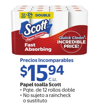 Papel toalla Scott Pqte. de 12 rollos doble