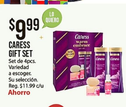 $caress gift variedad escoger. selección. reg. $c/u ahorro quiero stoff caress warm embrace caness