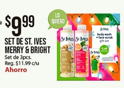 $set ives merry bright pcs. reg. $c/u ahorro quiero smes body wash +face scrub gift shes 'soff