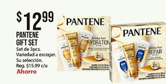 $pantene pantene gift variedad escoger. selección. reg. $c/u ahorro tine holiday hair hydration dpantene antine repair