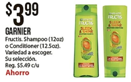 $arnier fructis shampoo conditioner variedad escoger. selección. reg. $c/u ahorro carvor sleek &shine