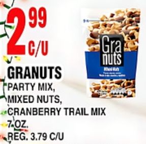 $c/u granuts party mixed nuts, cranberry trail reg. nuts