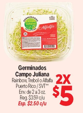 Germinados Campo Juliana Rainbow, Trebol o Alfalfa Puerto Rico / Env. de 2 a 3 oz.