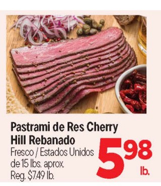 Pastrami de Res Cherry Hill Rebanado Fresco / Estados Unidos de 15 lbs. aprox.