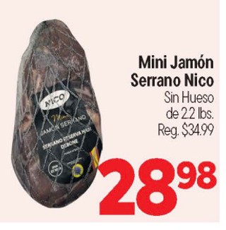 Mini Jamon Serrano Nico Sin Hueso de 2.2 lbs.