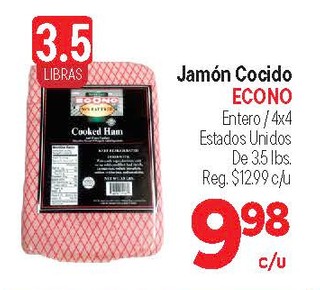 Jamon Cocido ECONO Entero / 4X4 Estados Unidos De 3.5 lbs.