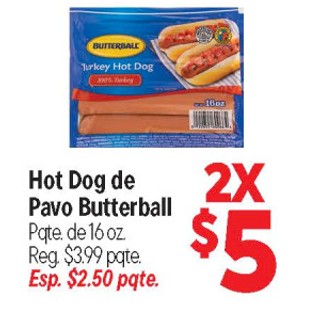 Hot Dog de Pavo Butterball Pqte. de 16 oz.