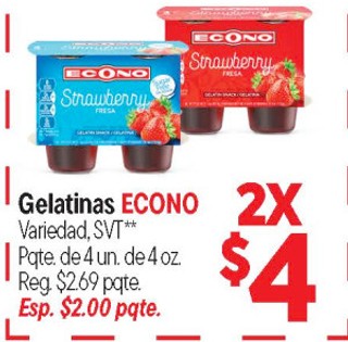 Gelatinas ECONO Variedad, SVT** Pqte. de 4 un. de 4 oz. 2 S