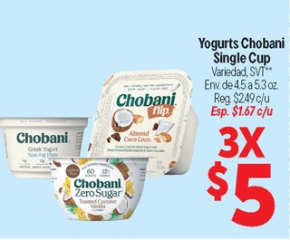 Yogurts Chobani Single Cup Variedad, SVT** Env. de 4.5 a 5.3 oz