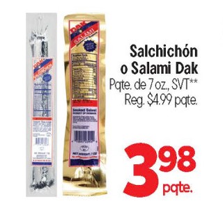 Salchichón o Salami Dak Pqte. de 7 oz., SVT**