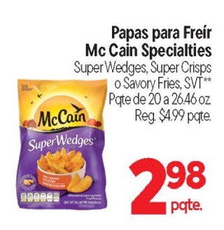 Papas para FreÃr Mc Cain Specialties Super Wedges, Super Crisps o Savory Fries, SVT** Pqte de 20 a 26.46 oz