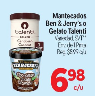 T Mantecados Ben & Jerry's o Gelato Talenti Variedad, SVT** Env. de 1 Pinta .
