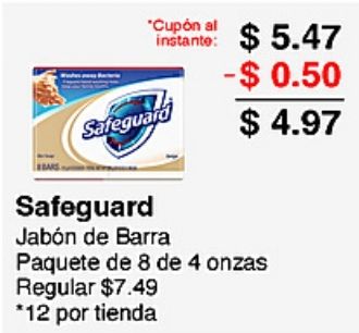 *cupón instante: safeguard jabón barra paquete onzas regular $*por tienda