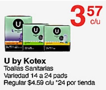 kotex toallas sanitarias variedad pads regular $c/u *por tienda