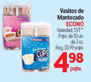 Vasitos de Mantecado ECONO Variedad, SVT** Pqte. de 10 un. de 3 oz