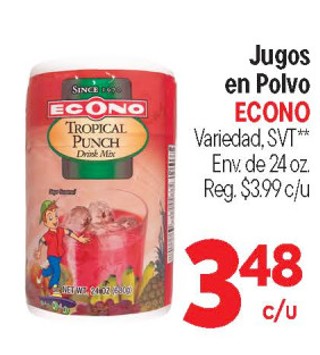 Jugos en Polvo ECONO Variedad, SVT** Env. de 24 oz.