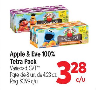 Apple & Eve 100% Tetra Pack Variedad. SVT** Pqte. de 8 un de 4.23 oz.
