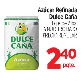 Azúcar Refinada Dulce Caña Pqte. de 2 lbs. A NUESTRO BAJO PRECIO REGULAR